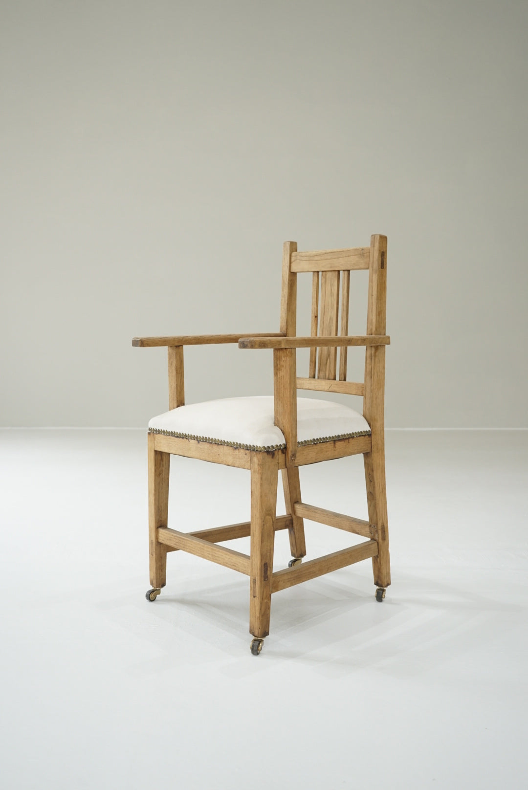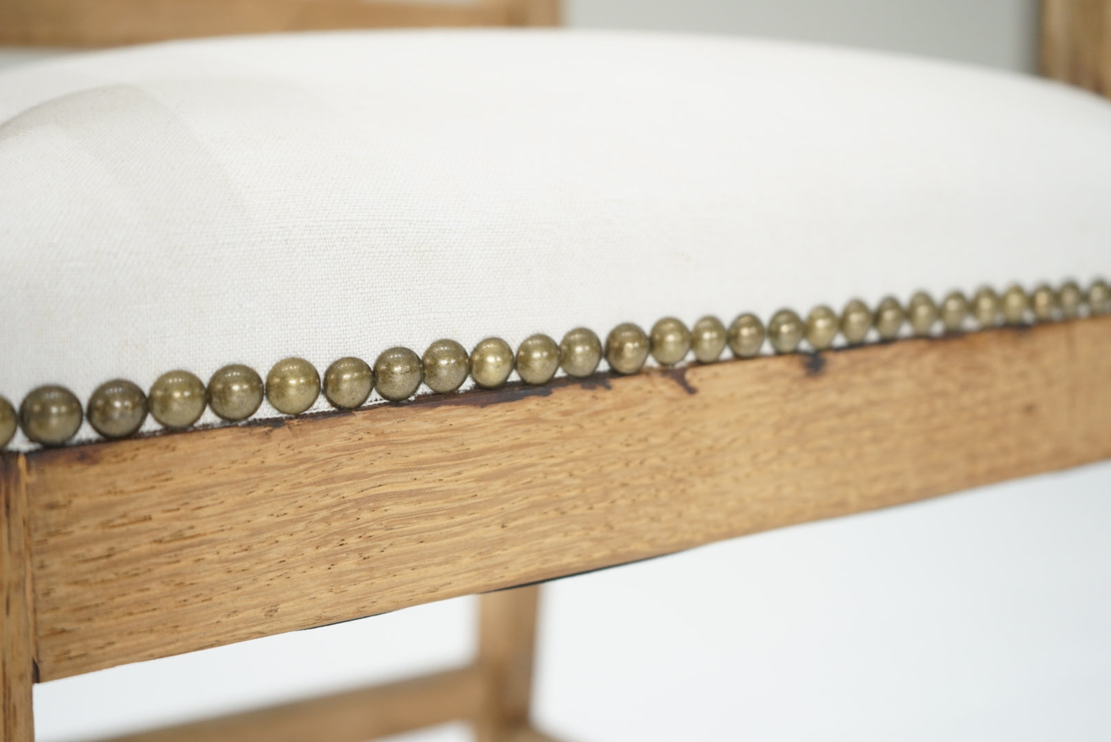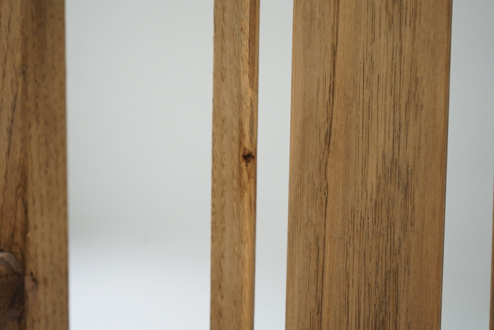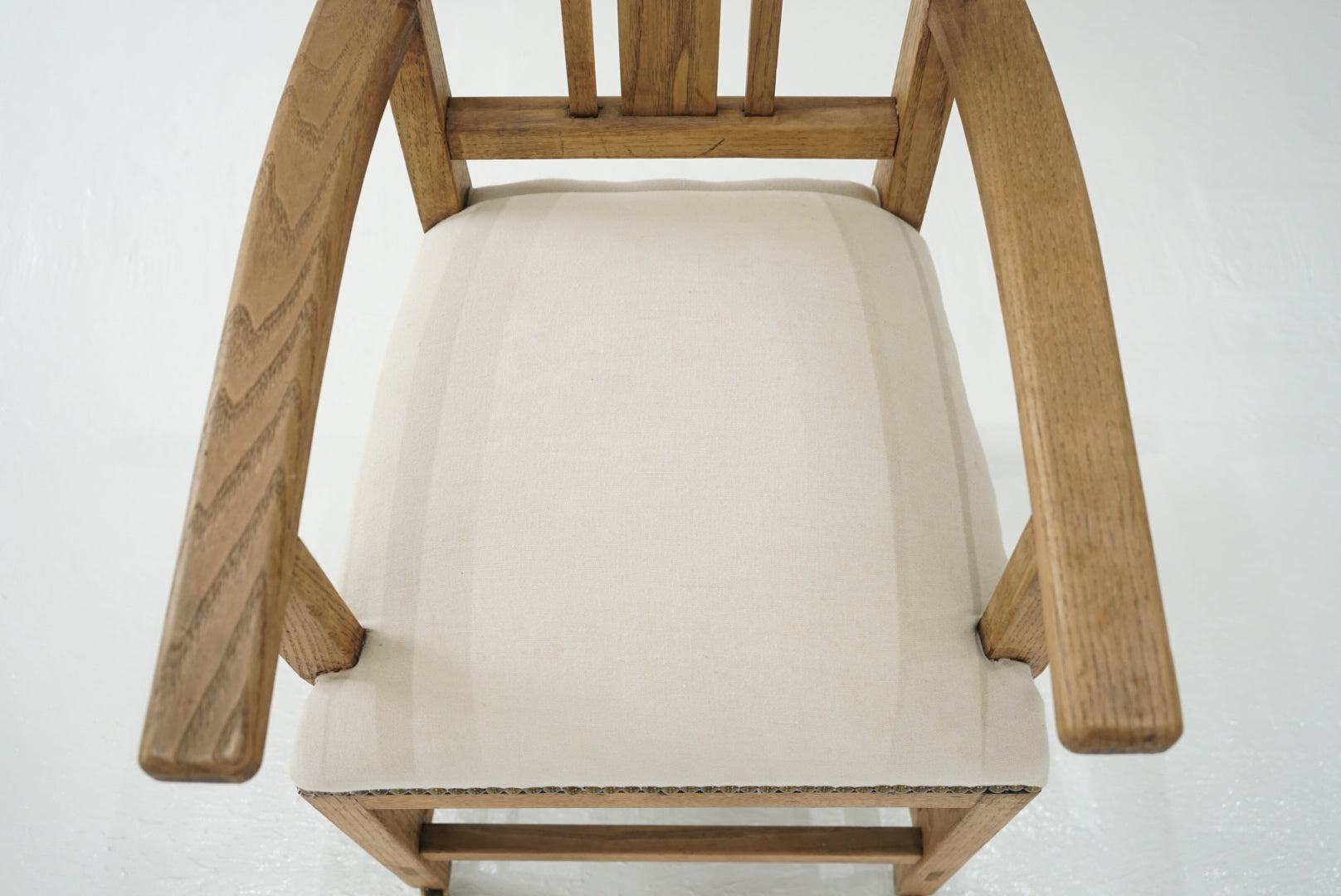 大人用の椅子と同様に、古いデッドストックの生地を張っています。