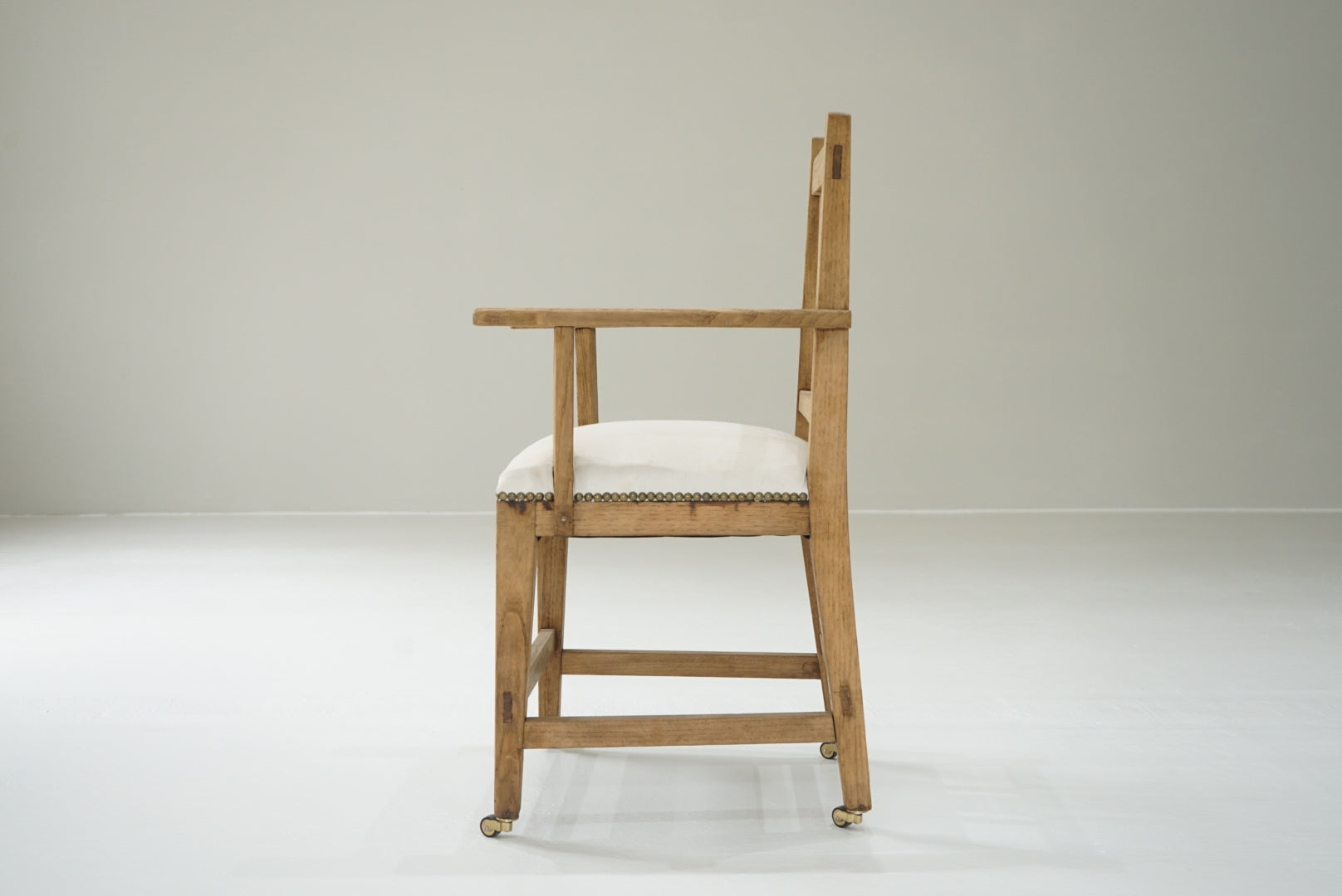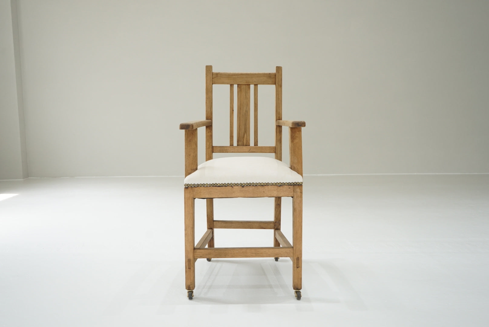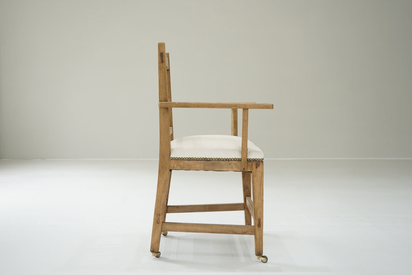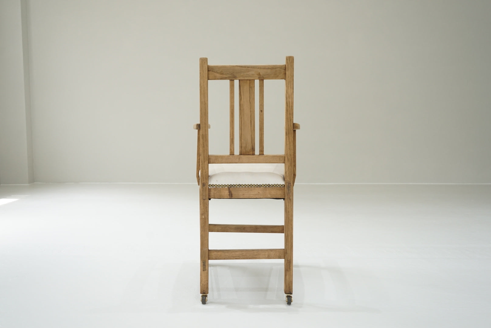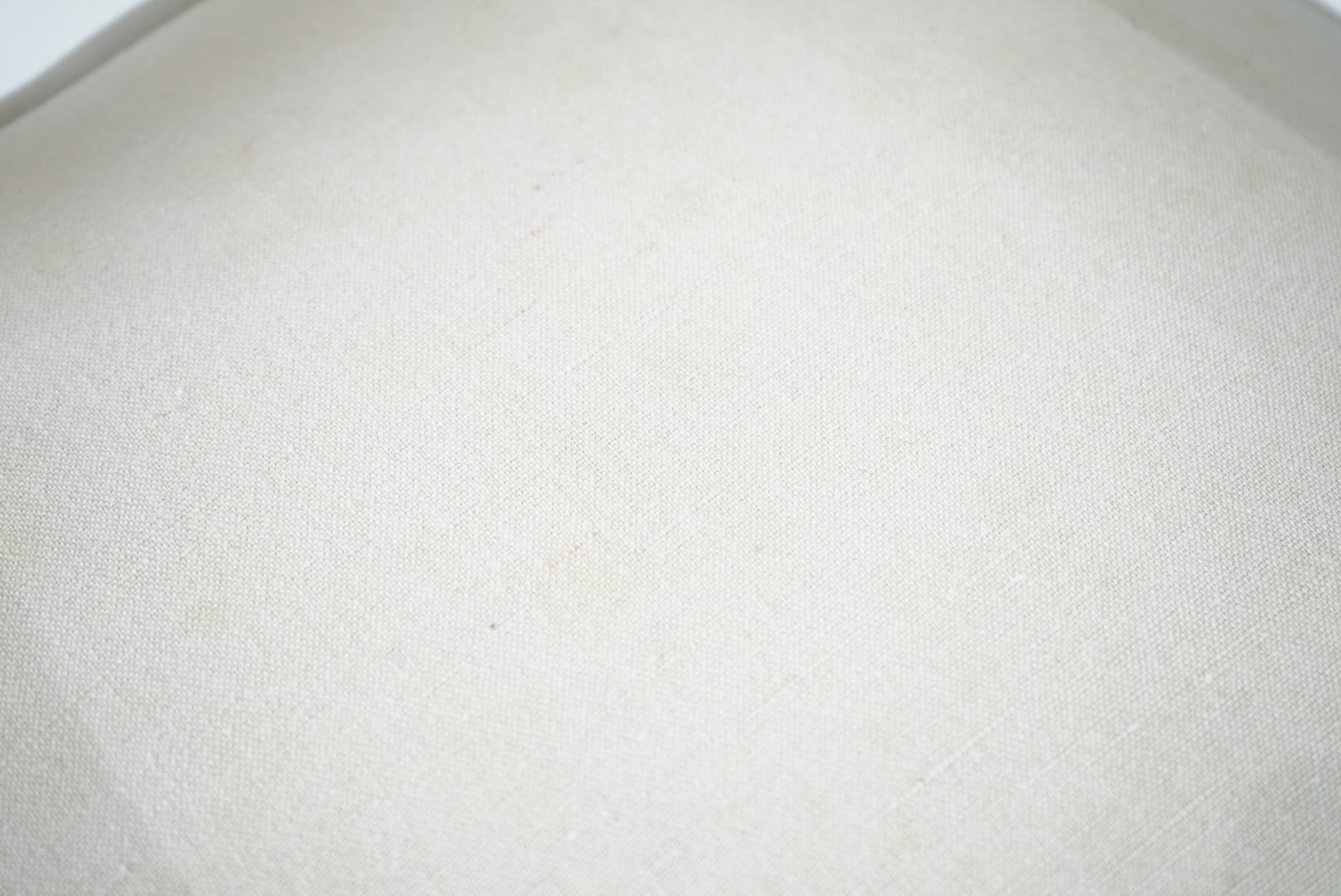 大人用の椅子と同様に、古いデッドストックの生地を張っています。