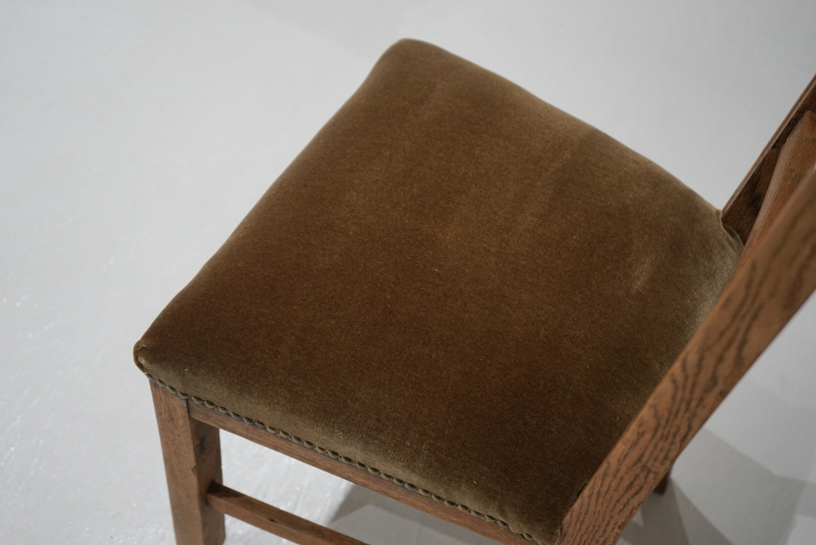 ウレタンフォームは新規に交換済みで、経年で味わいを増したフレームに合わせてブラウンのモケットをセレクト。やわらかな手触りと適度な弾力で長く座っても心地よく過ごせます。