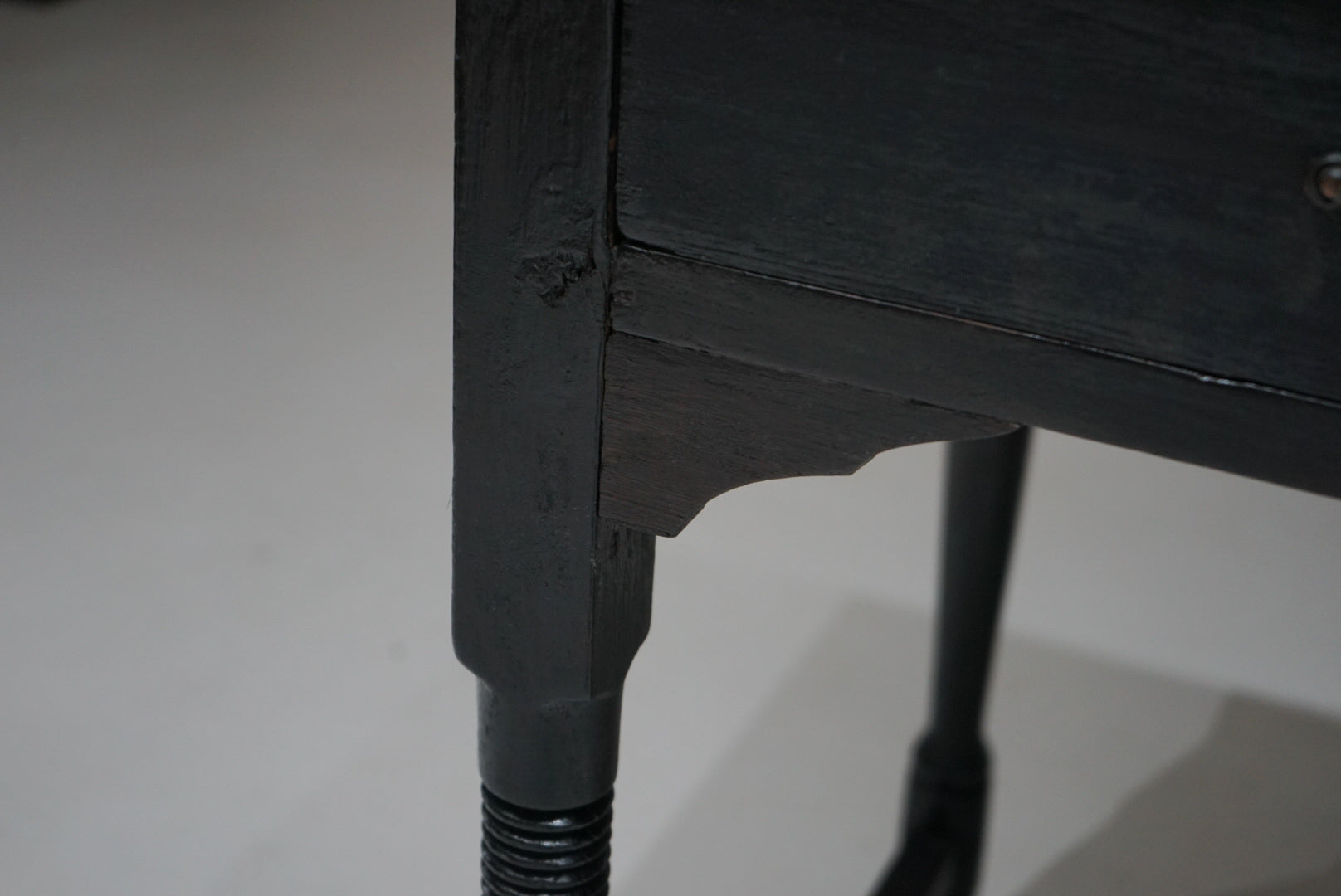 細身の脚部には旋盤加工が施され、洗練された印象を与えます。