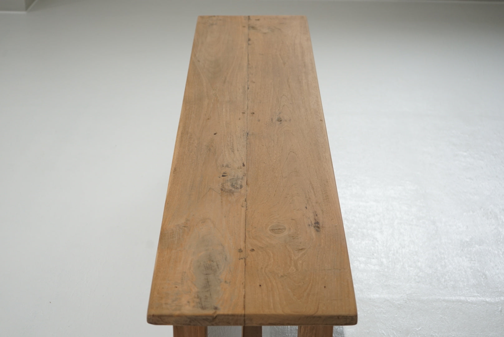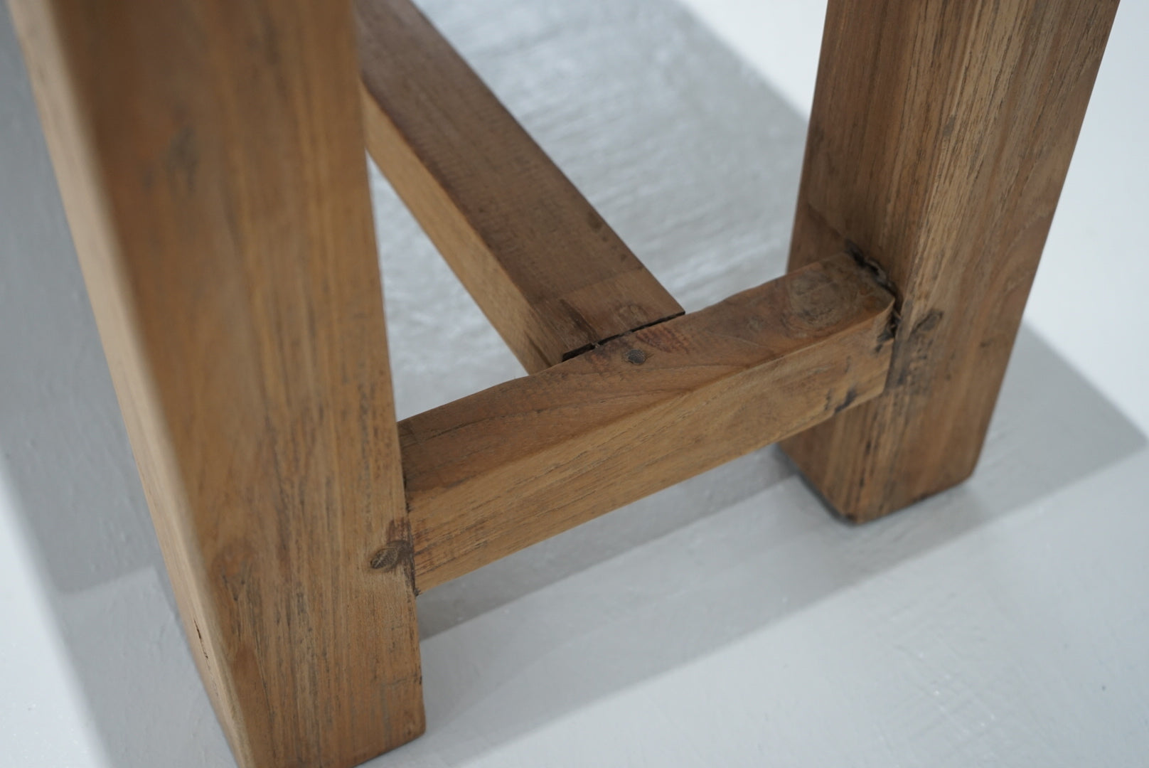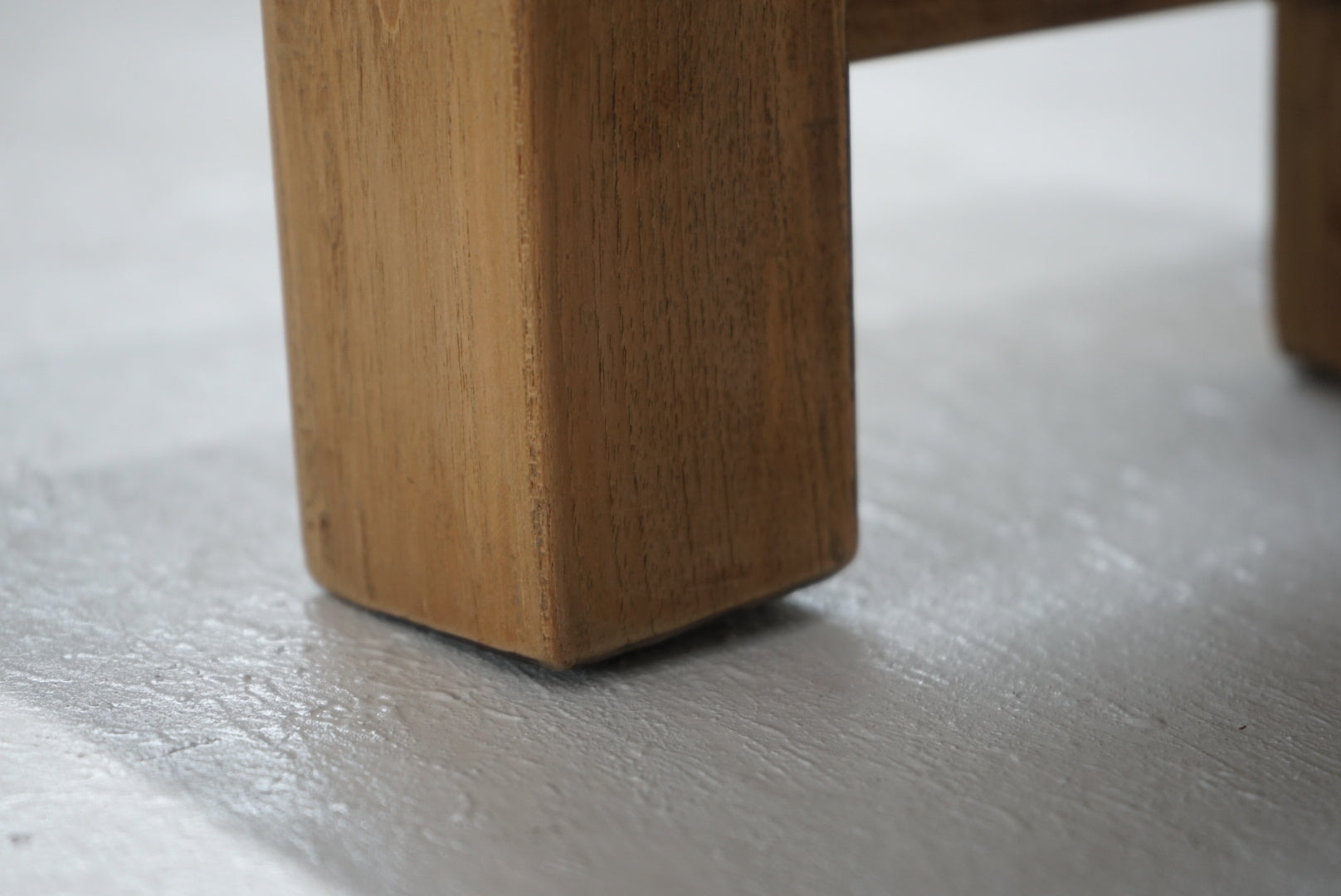 脚にはわずかな反りが見られますが、厚みのある無垢材を使用しており、しっかりとしたつくりです。