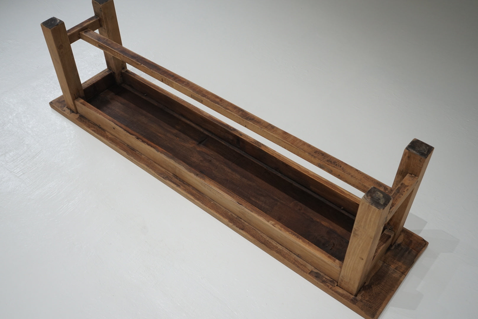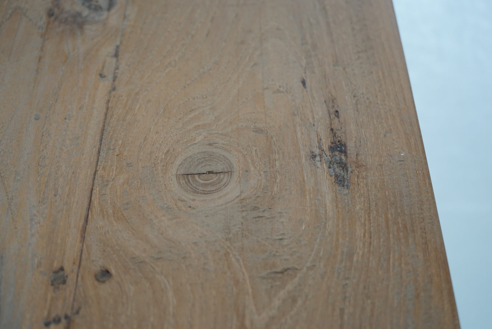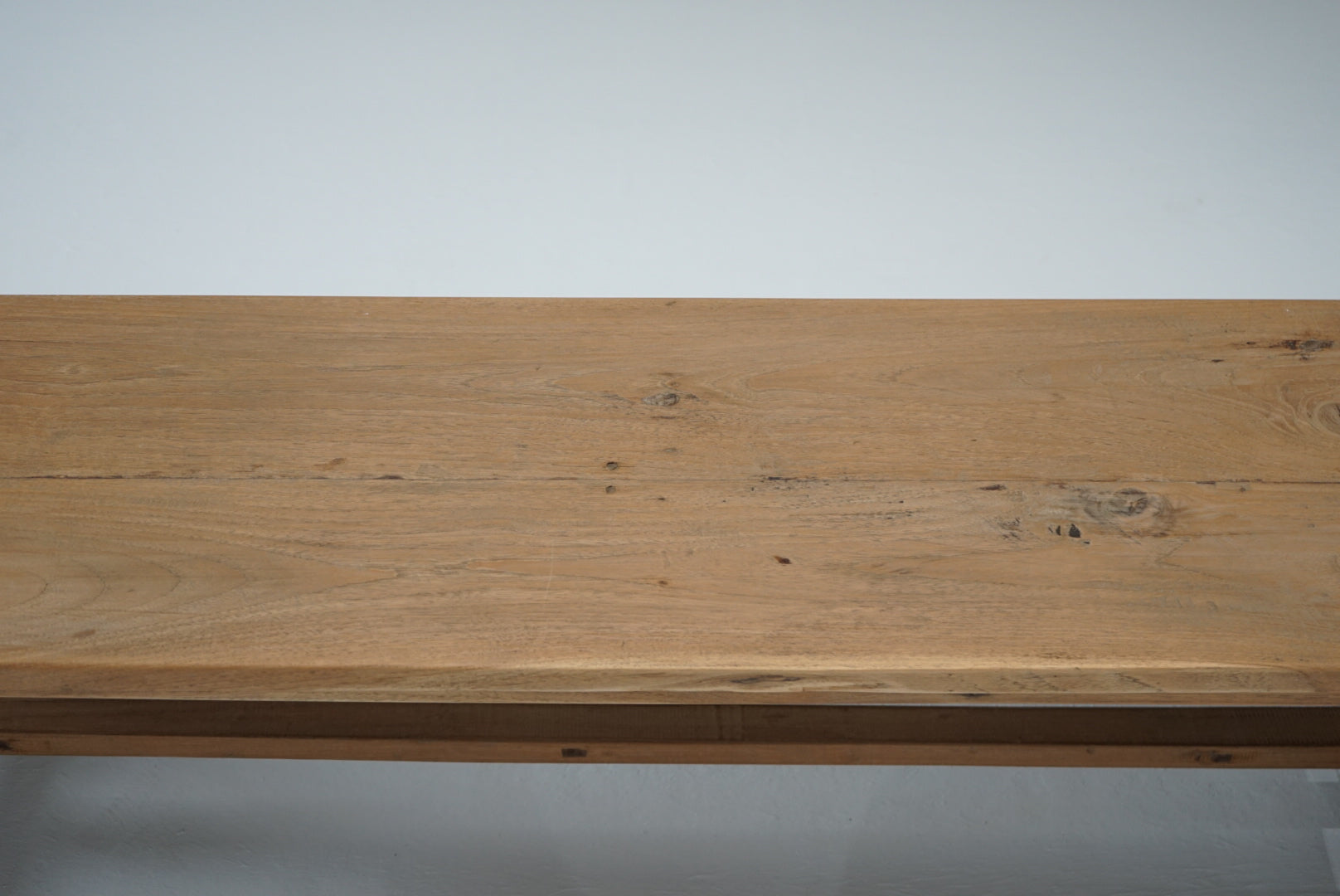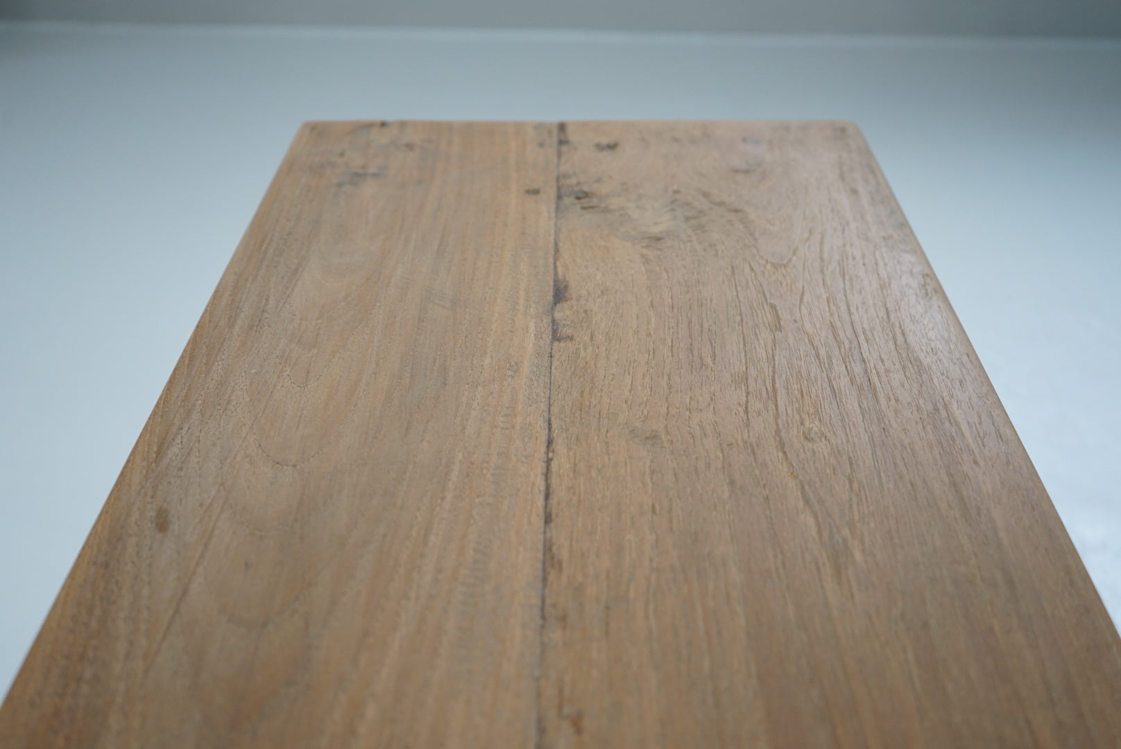 脚にはわずかな反りが見られますが、厚みのある無垢材を使用しており、しっかりとしたつくりです。