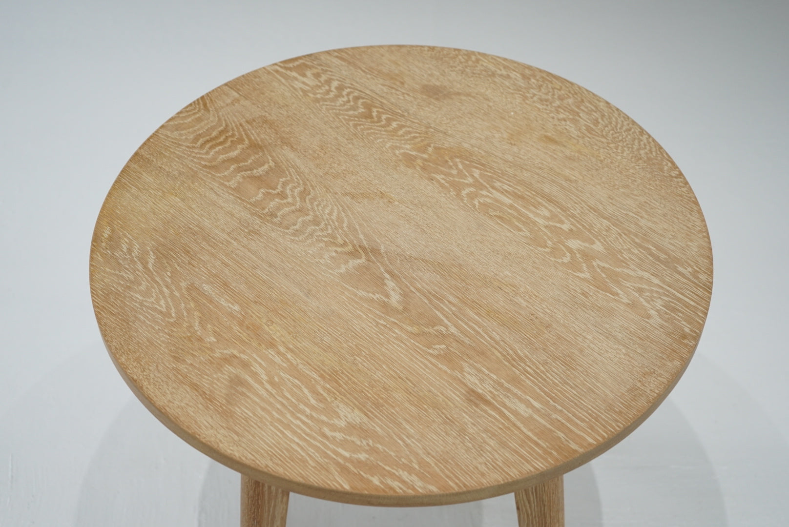 大小ふたつの円が重なり合うような天板が印象的なテーブル。