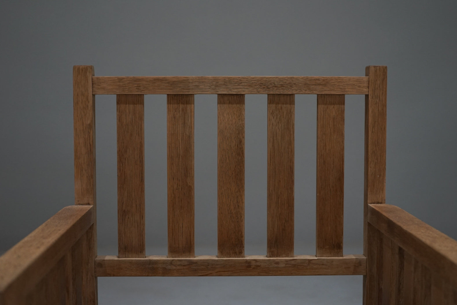背を預けるというより、腰を下ろすように座る。足を前に投げ出したり、胡坐をかいたり。そんな姿勢が似合うイスです。