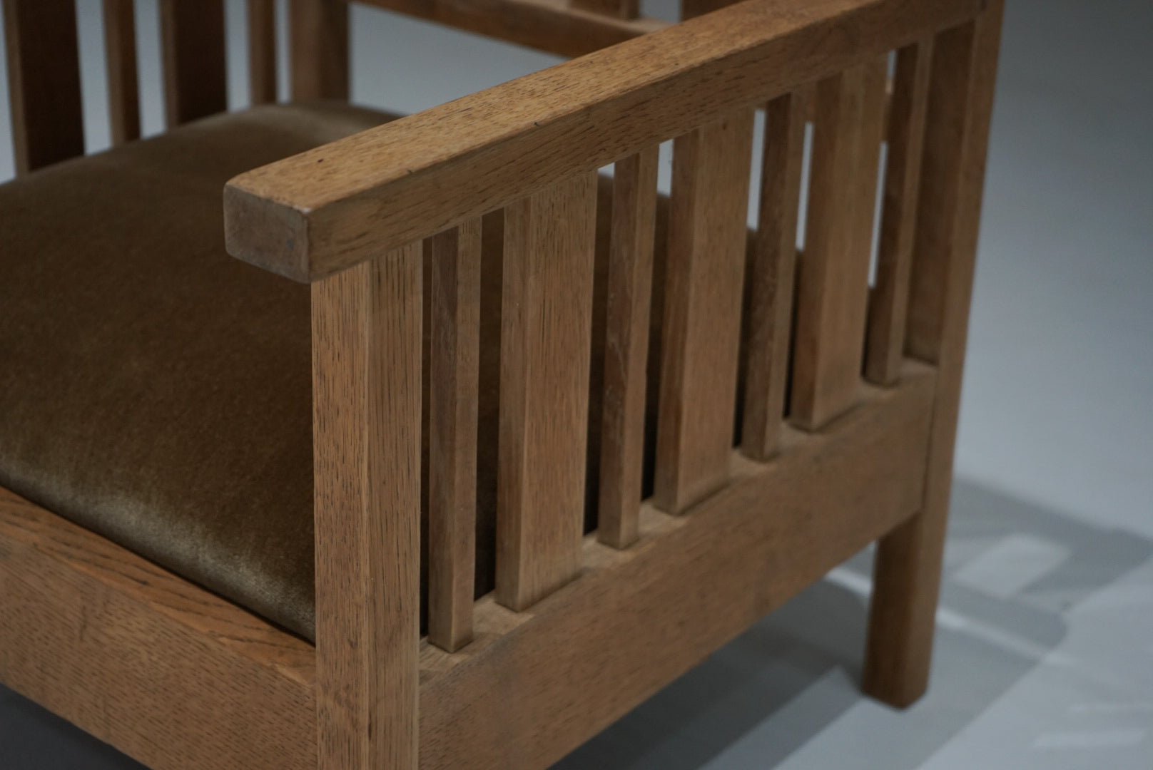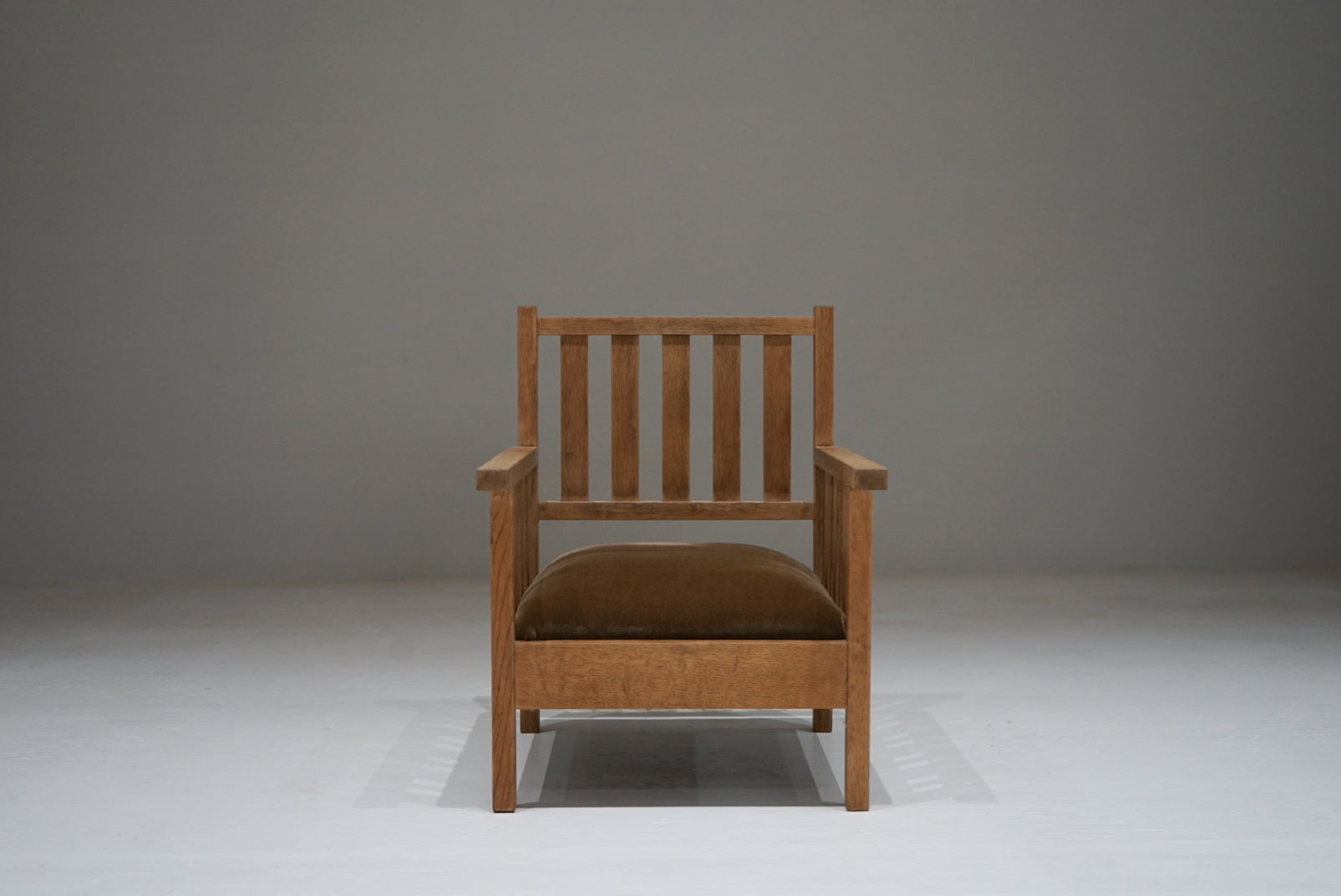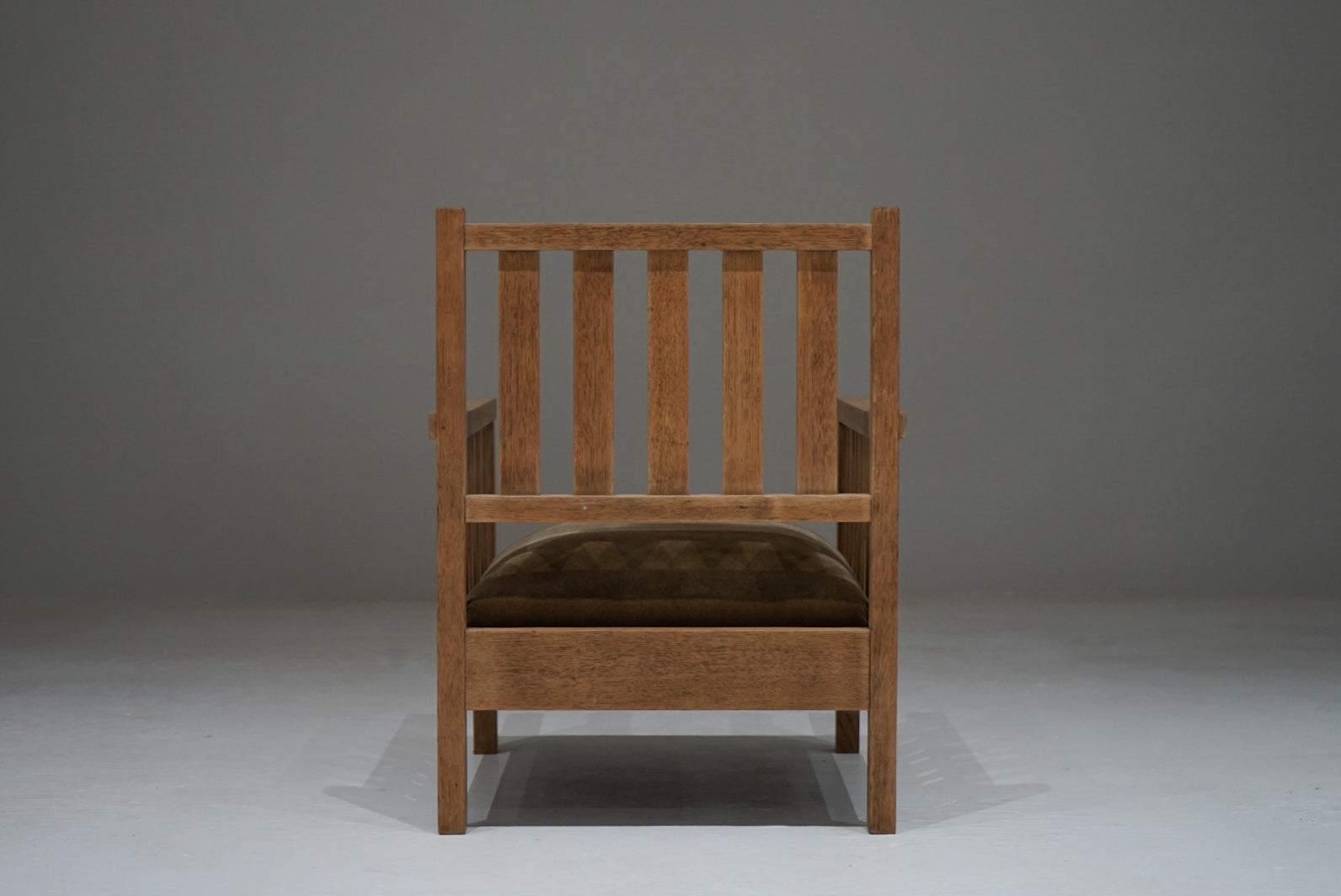 ウレタンフォームは新規に交換済みで、経年で味わいを増したフレームに合わせてブラウンのモケットをセレクト。やわらかな手触りと適度な弾力で長く座っても心地よく過ごせます。 座面は取り外しが可能ですが、しっかりとはまっているので取り外す際は少しコツが要ります。