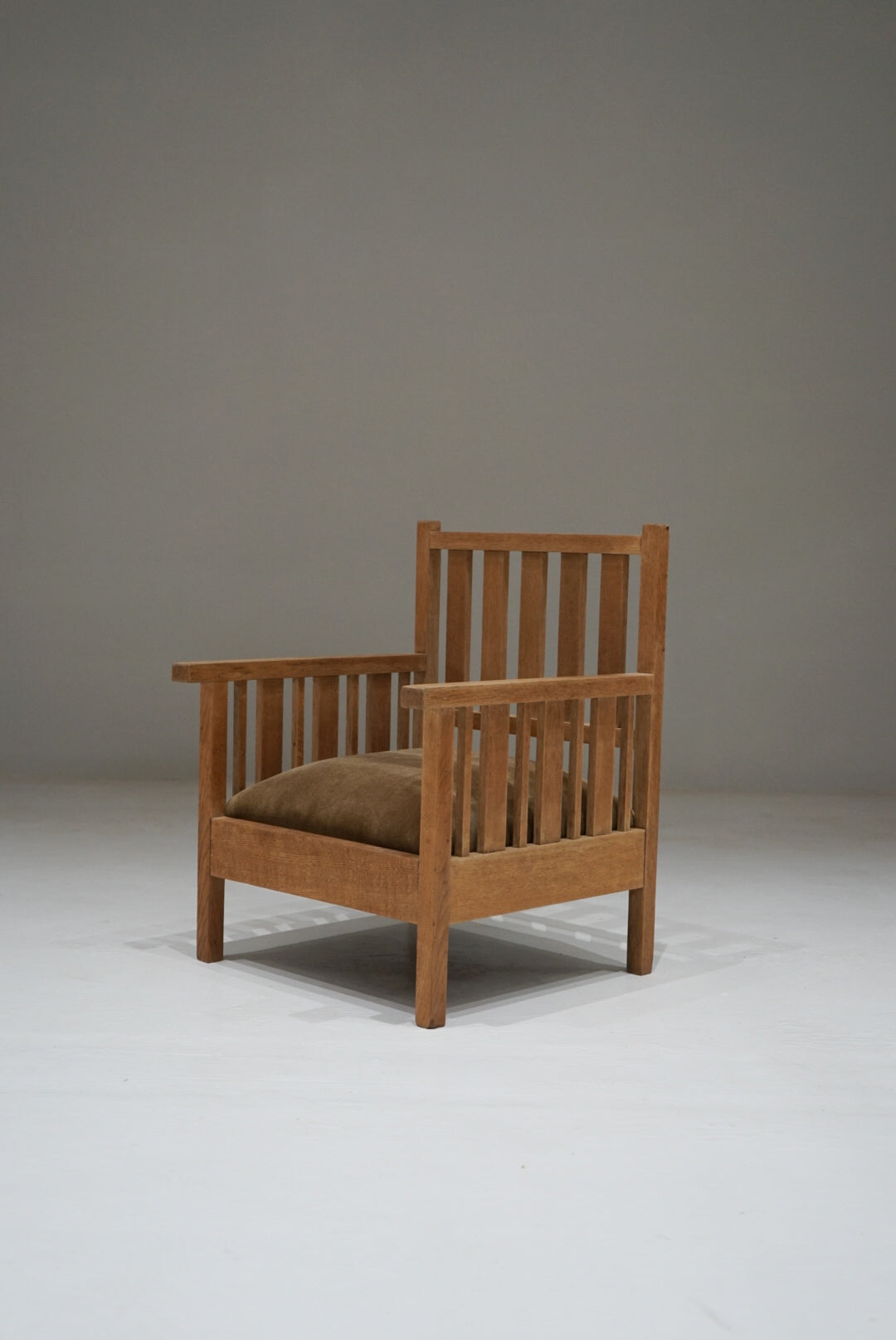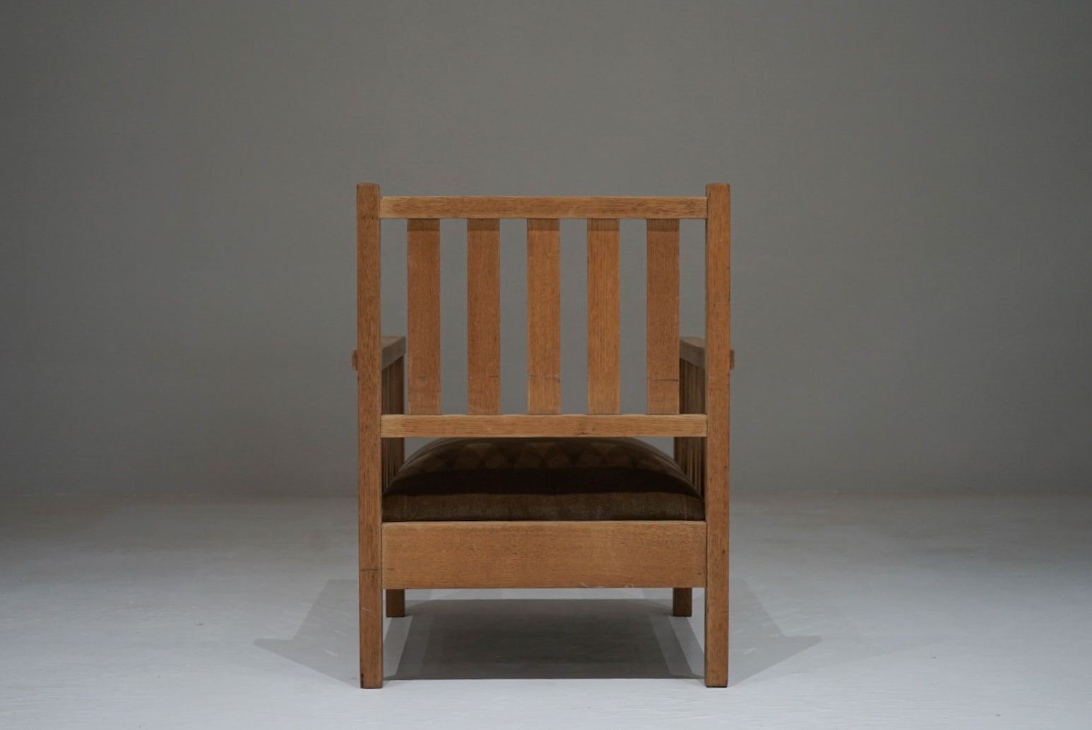ウレタンフォームは新規に交換済みで、経年で味わいを増したフレームに合わせてブラウンのモケットをセレクト。やわらかな手触りと適度な弾力で長く座っても心地よく過ごせます。 座面は取り外しが可能ですが、しっかりとはまっているので取り外す際は少しコツが要ります。
