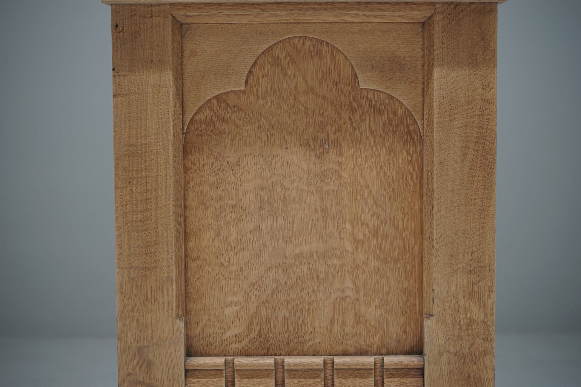 正面にはアーチ状の意匠が施され、簡潔な構成の中にやわらかな表情を添えています。