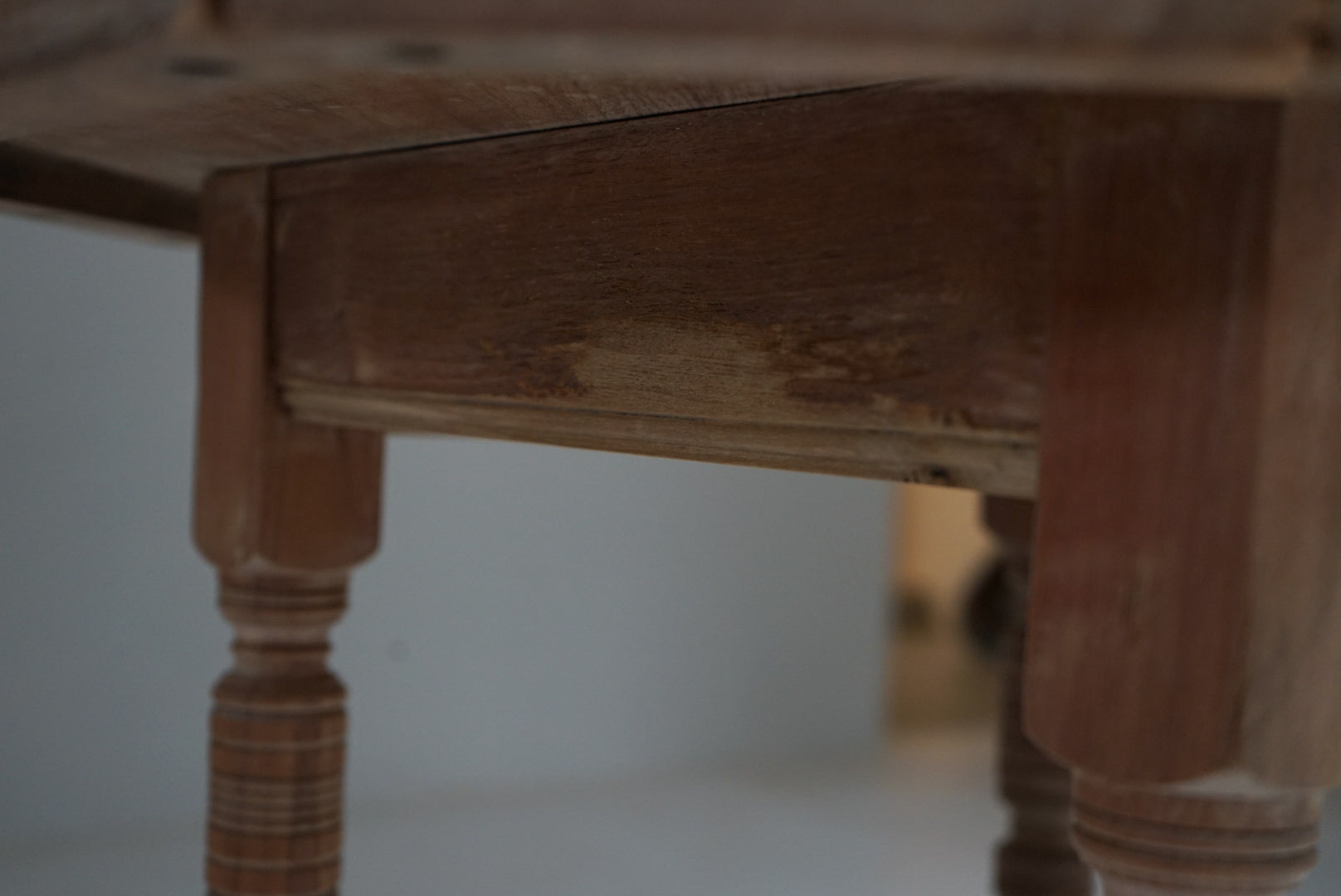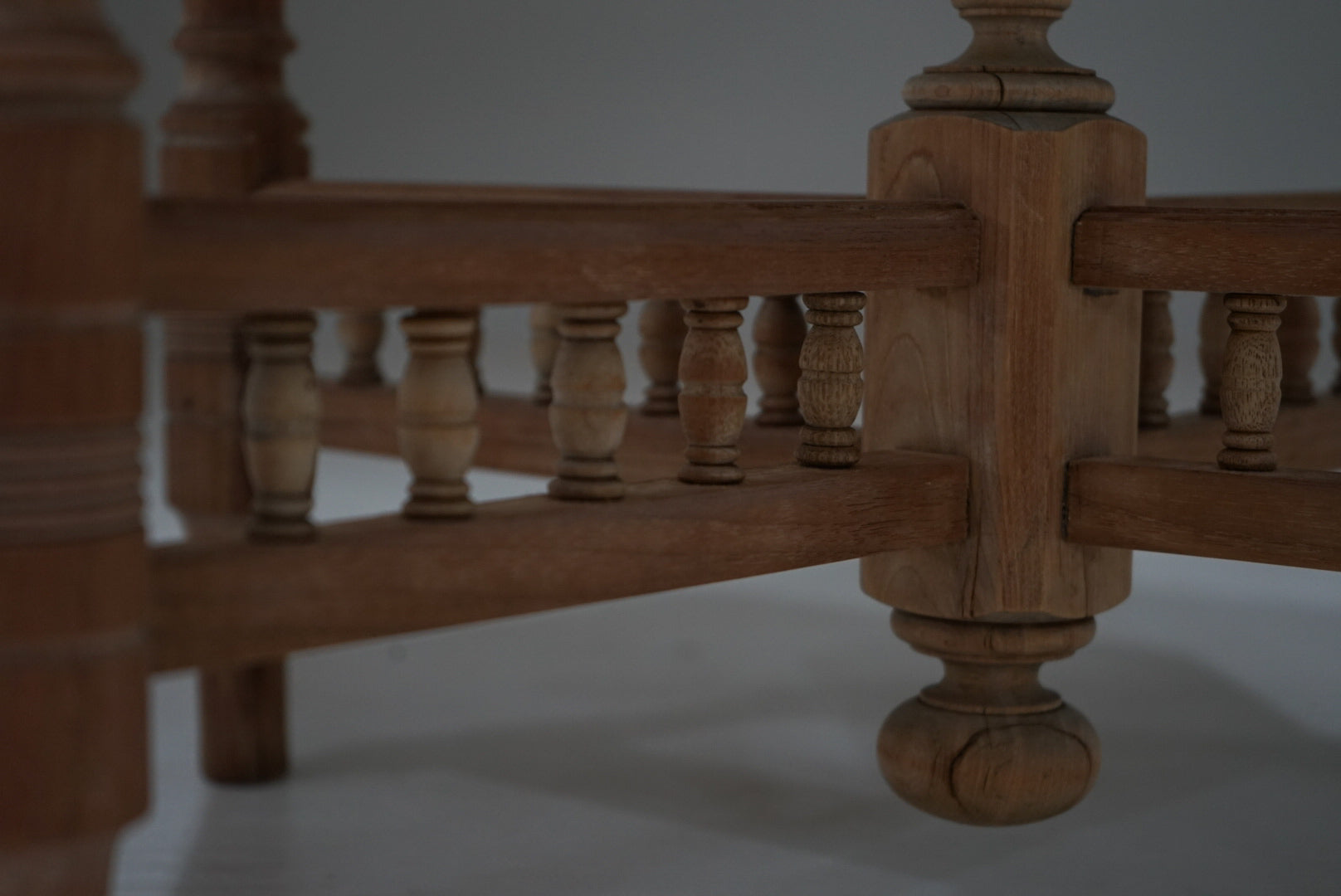 すらりとした脚にはいくつものラインが刻まれ、貫の造形はもはや構造というより小さなオブジェのよう。持てる技術を注ぎ込んだ、細部まで手の込んだテーブルです。