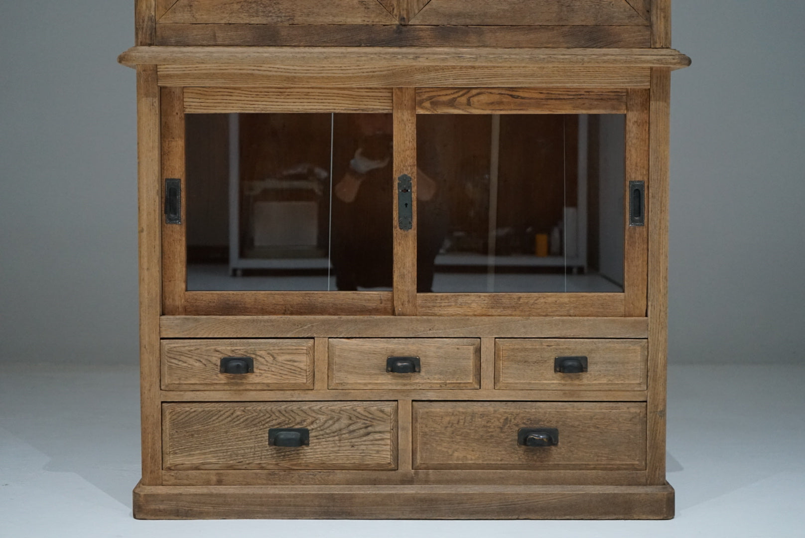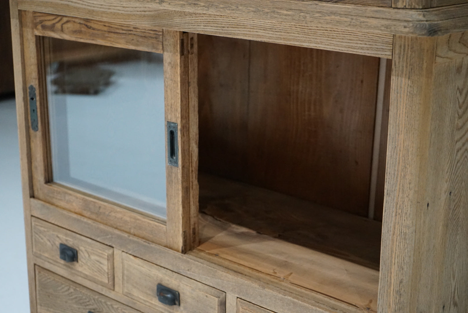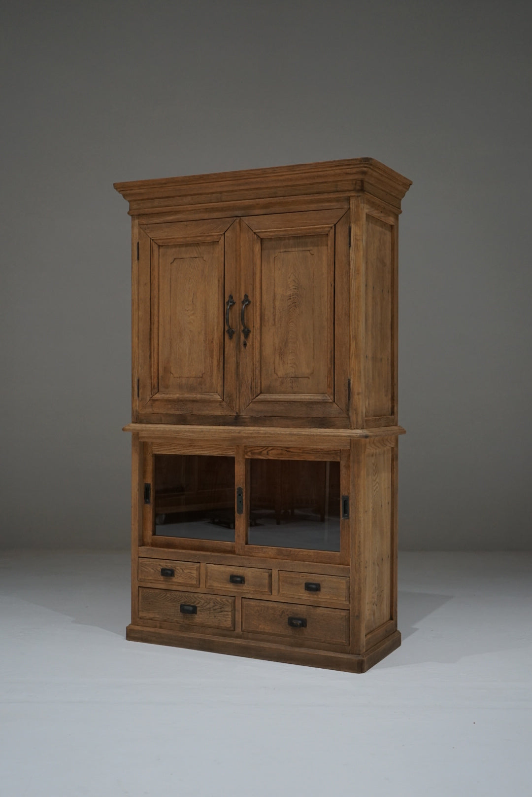 観音扉とガラス引き戸を組み合わせた収納棚は、本棚や食器棚として幅広くお使いいただけます。