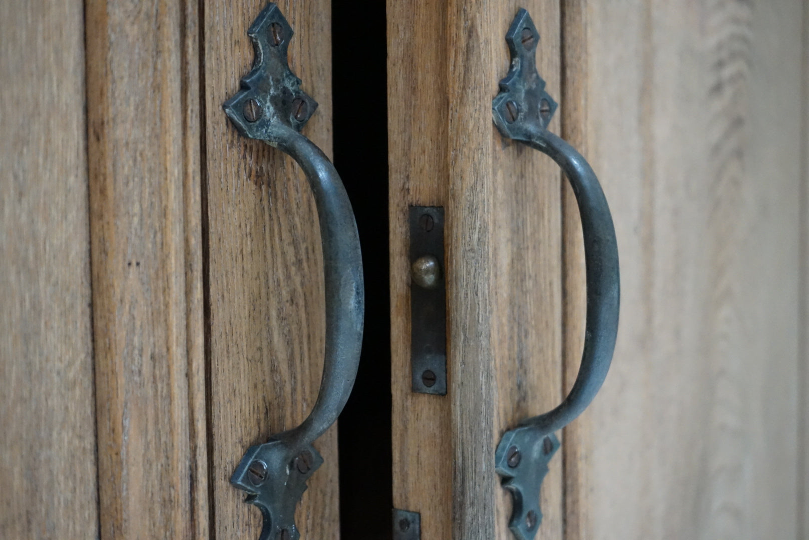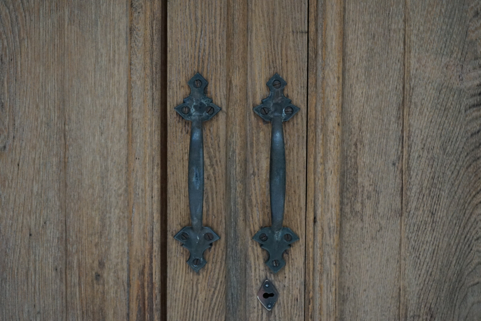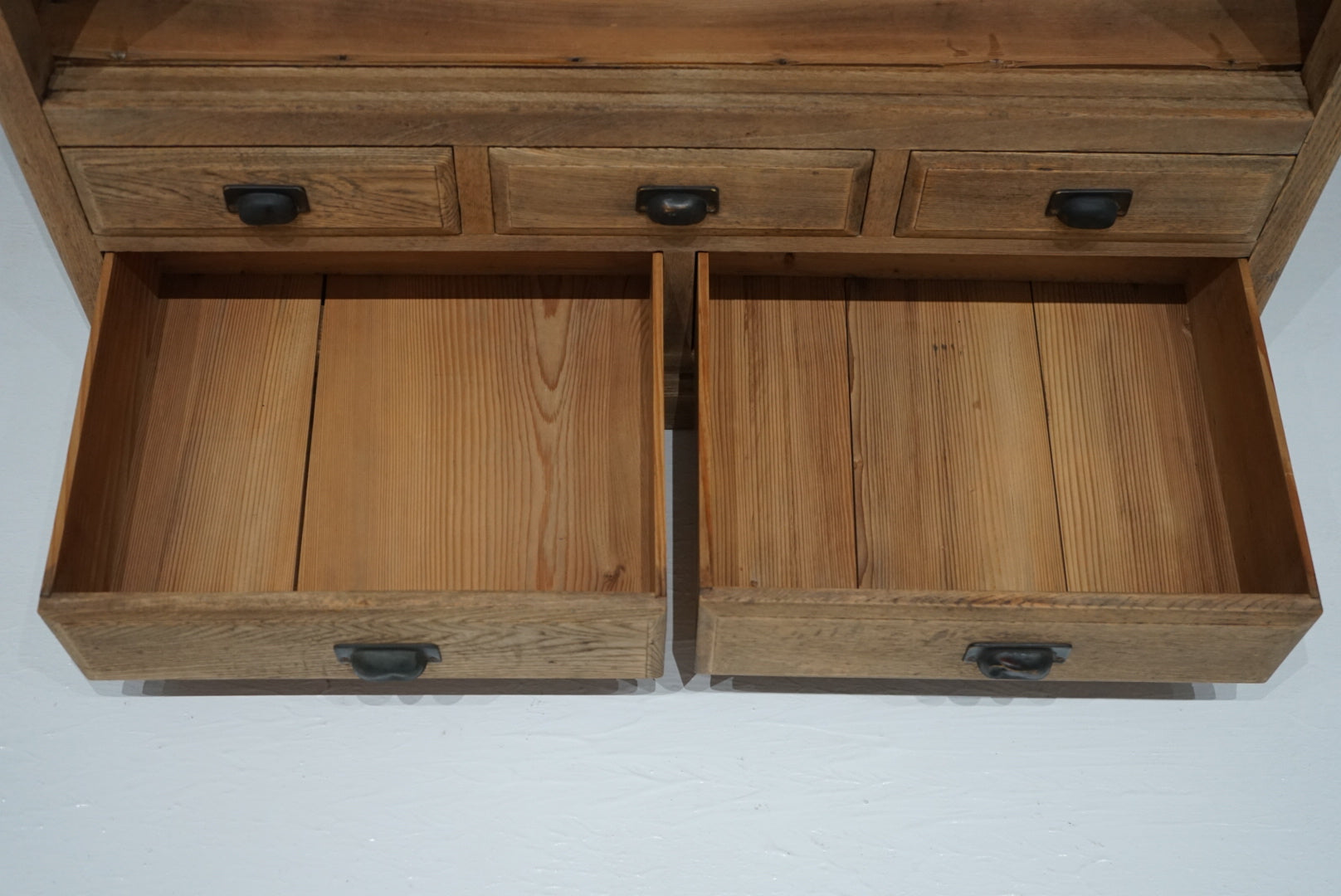 観音扉とガラス引き戸を組み合わせた収納棚は、本棚や食器棚として幅広くお使いいただけます。