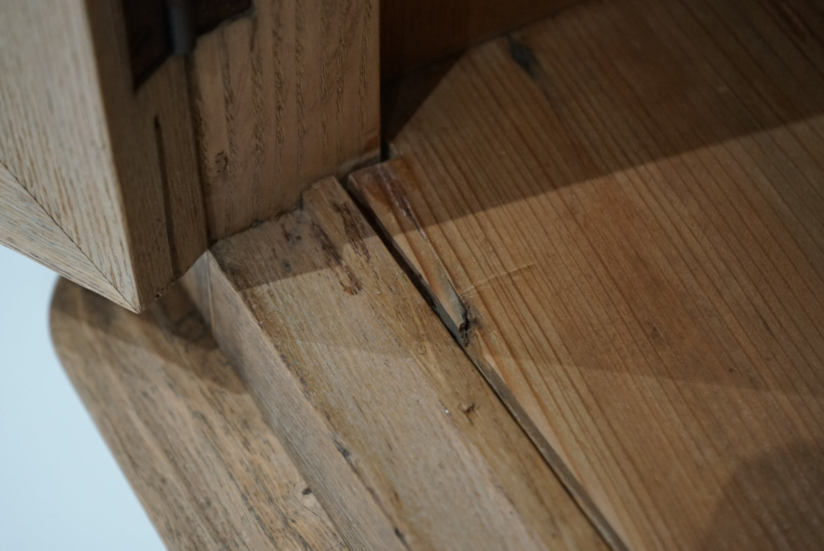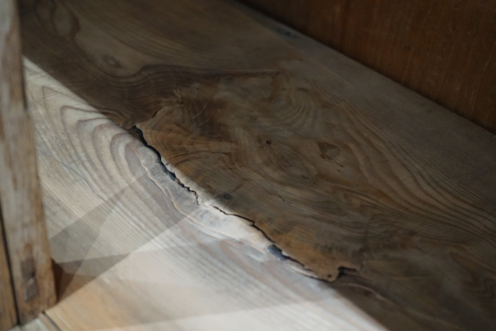 棚板にはわずかな反りがございますが、いずれも無垢の広葉樹を贅沢に使用しており、このまま採用しています。気になる場合は、フェルトを挟むなどでご対応ください。